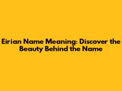 Hey there, name enthusiasts! Are you curious about the name Eirian? Well, you've come to the right place! This enchanting name holds a world of meaning and history, and we're here to explore it all. In this article, we will delve into the Eirian name meaning, origin, popularity, and everything else that makes this name so special. Whether you're considering it for your little one or just fascinated by names, prepare to be captivated by the allure of Eirian.