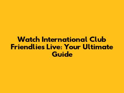 Watch International Club Friendlies Live: Your Ultimate Guide